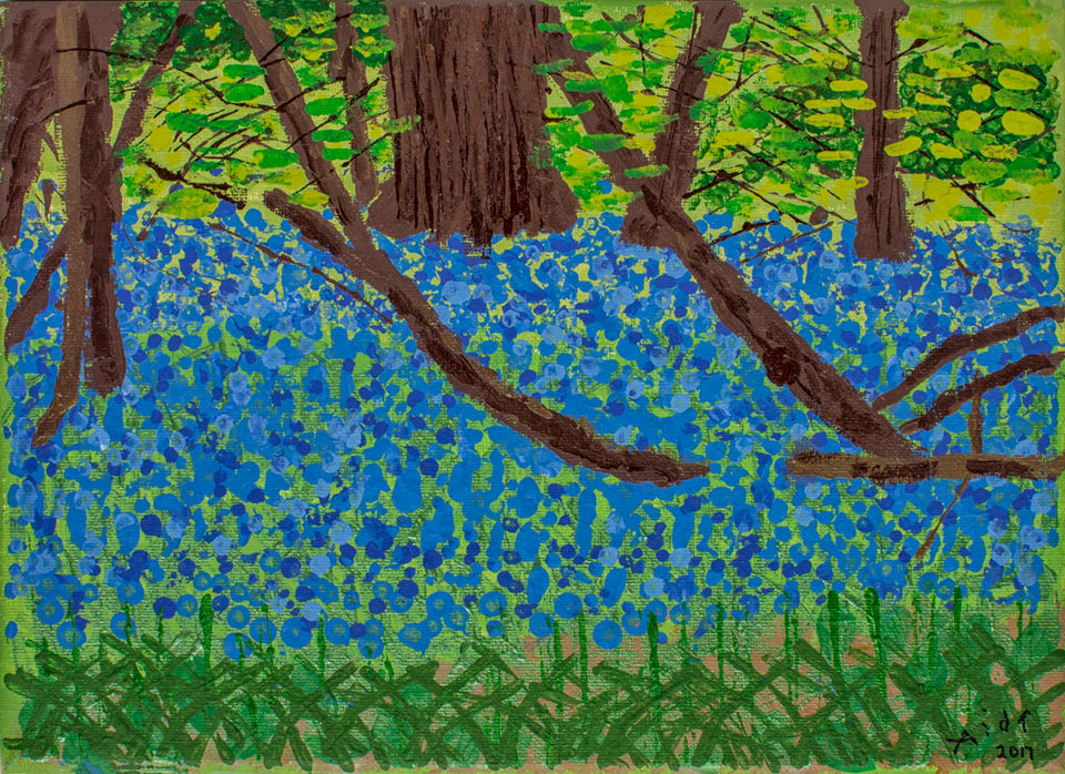 In 2017 Aida moved to St Johns College where she has been encouraged and inspired to continue painting by her keyworker Ed. To begin with Aida needed a lot of verbal support (and some physical help with mixing colours) in order to paint a picture, needing her attention drawn to each area, line, shadow, colour, etc. However, she is now becoming much more independent and mainly just needs prompting to keep her focussed.